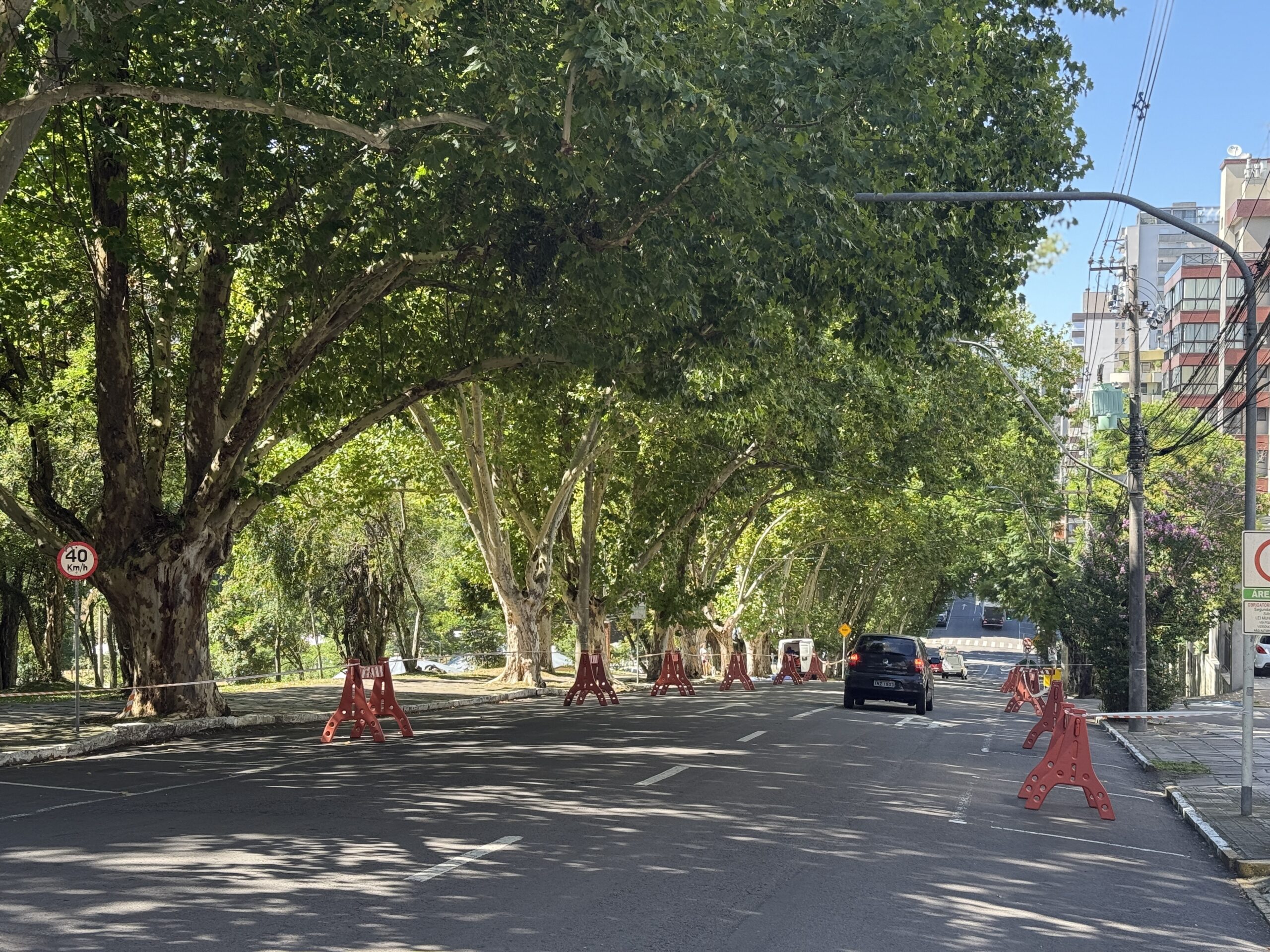 A Rua Dr Montaury, desde a esquina com a Rua Os 18 do Forte, já está bloqueada