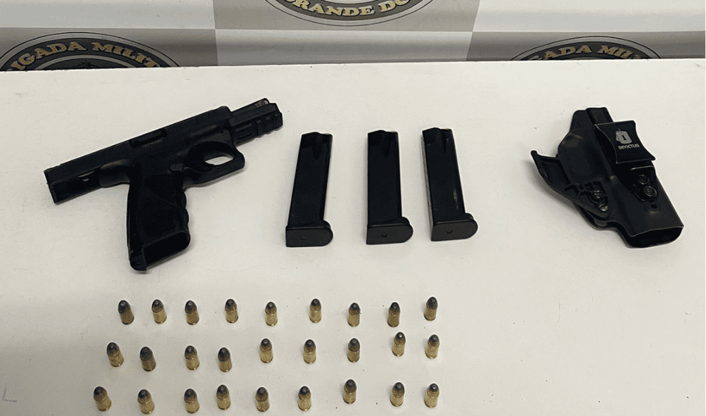 No interior do carro, os policiais encontraram uma pistola Taurus TS9, calibre 9mm, três carregadores, 27 munições intactas e três cápsulas deflagradas. Segundo o relato da vítima à polícia, o homem a agrediu fisicamente, arrastou-a pelos cabelos e fez ameaças de morte e suicídio. Ele teria efetuado três disparos em direção à vegetação próxima.