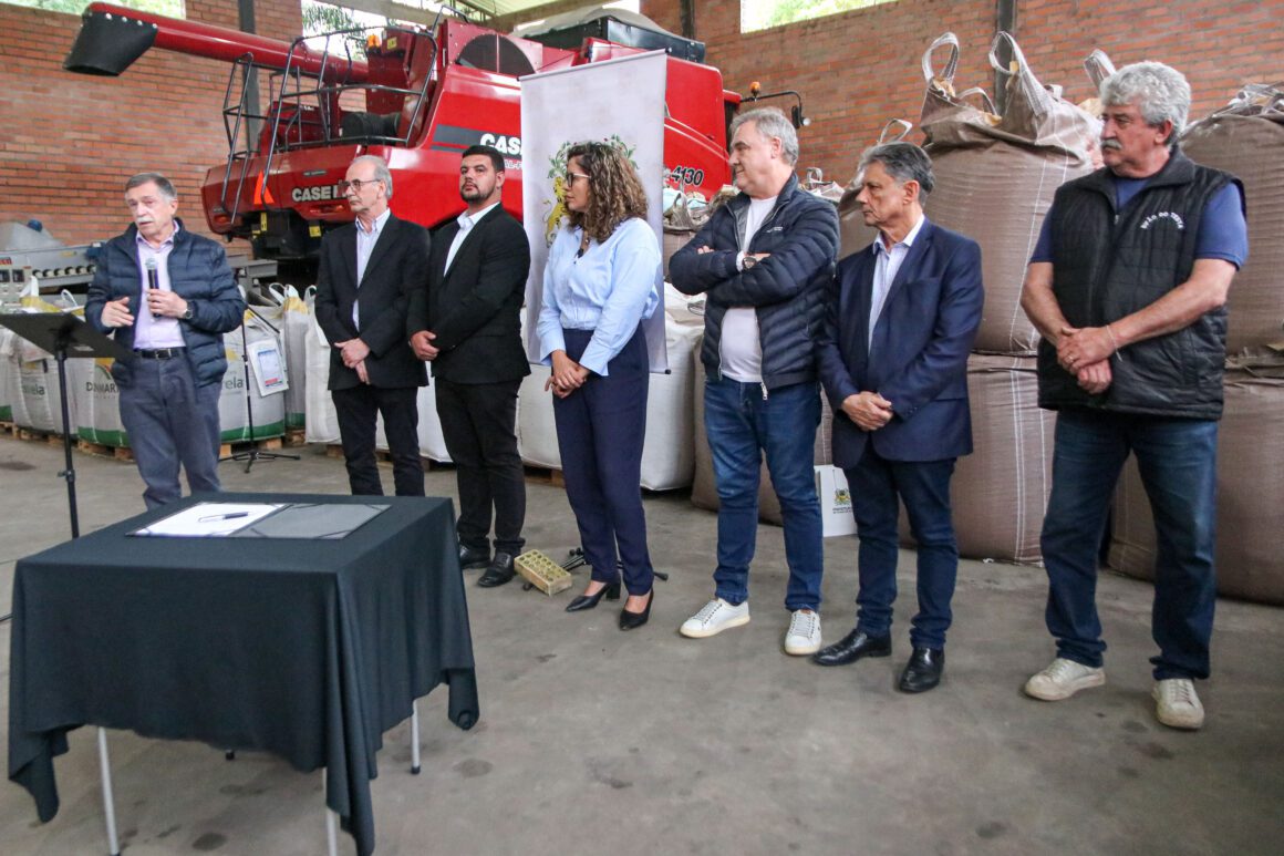 Foi assinado o fim da tarde de quinta-feira (16) a ordem de início do trecho 1 da obra de pavimentação asfáltica da Estrada Municipal Claudino Antônio da Costa, no distrito de Santa Lúcia do Piaí, em Caxias do Sul. O evento ocorreu na propriedade da Família Tomazzini e contou com a presença do prefeito Adiló Didomênico, do vice Edson Néspolo, do chefe da Casa Civil, Roneide Dornelles, do secretário de Obras, Lucas Suzin, do presidente da Codeca, Milton Balbinot, do subprefeito de Santa Lúcia do Piaí, João Carlos Giordani, da deputada federal, Denise Pessôa, e comunidade.