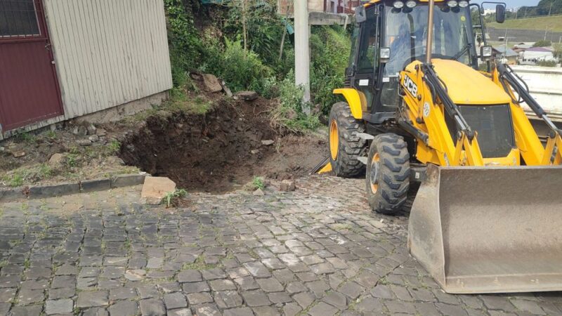 Rede passa sob imóvel e poste, o que exige reparo mais complexo na via A rede de drenagem da rua Doutor Henrique Fracasso, no bairro Fátima, em Caxias do Sul,…