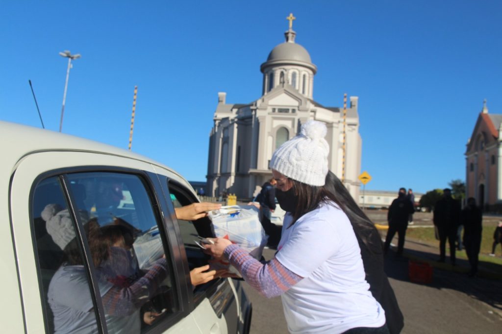 Os fiéis eram convidados a deixar alimentos para doação e, na sequência, recebiam a bênção dos padres, sem que passageiro ou motorista precisassem descer do automóvel, para garantir a segurança de todos em um momento tão delicado. Estima-se que 10 toneladas de alimentos foram arrecadadas nas mais de oito horas de Drive-Thru da Fé, evento realizado pela Prefeitura de Farroupilha e pelo Santuário.