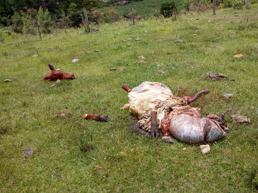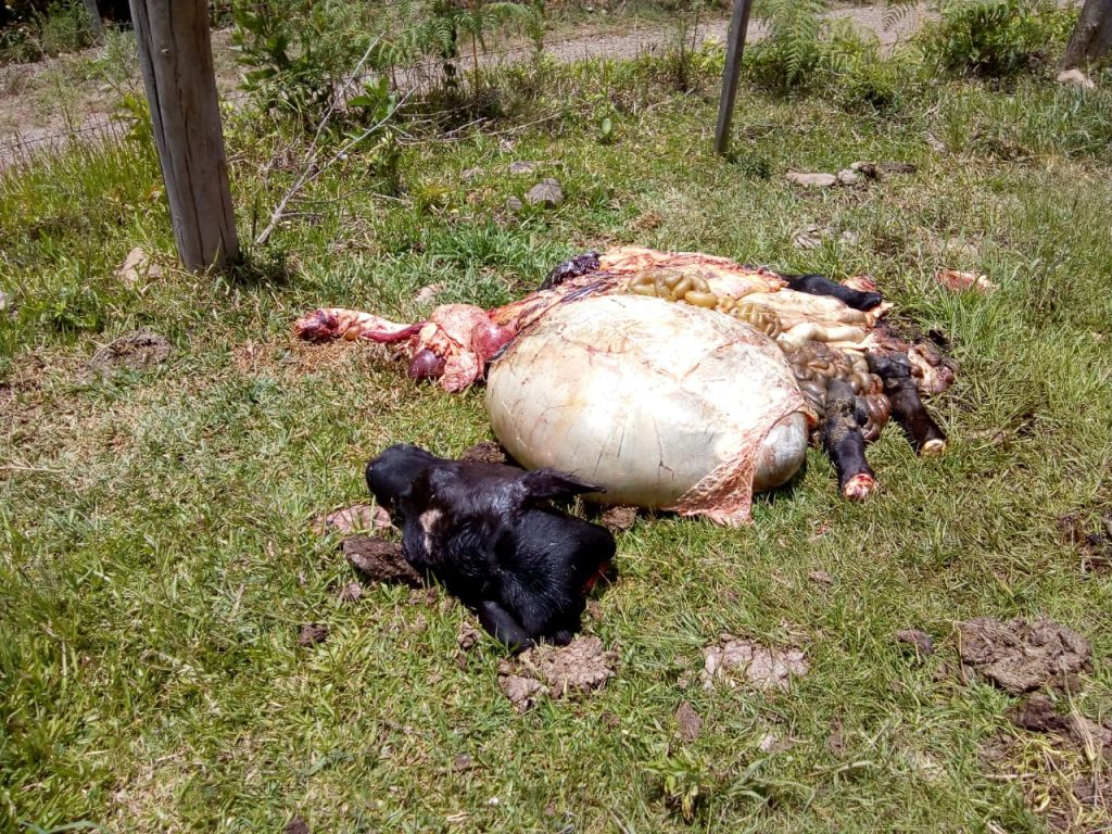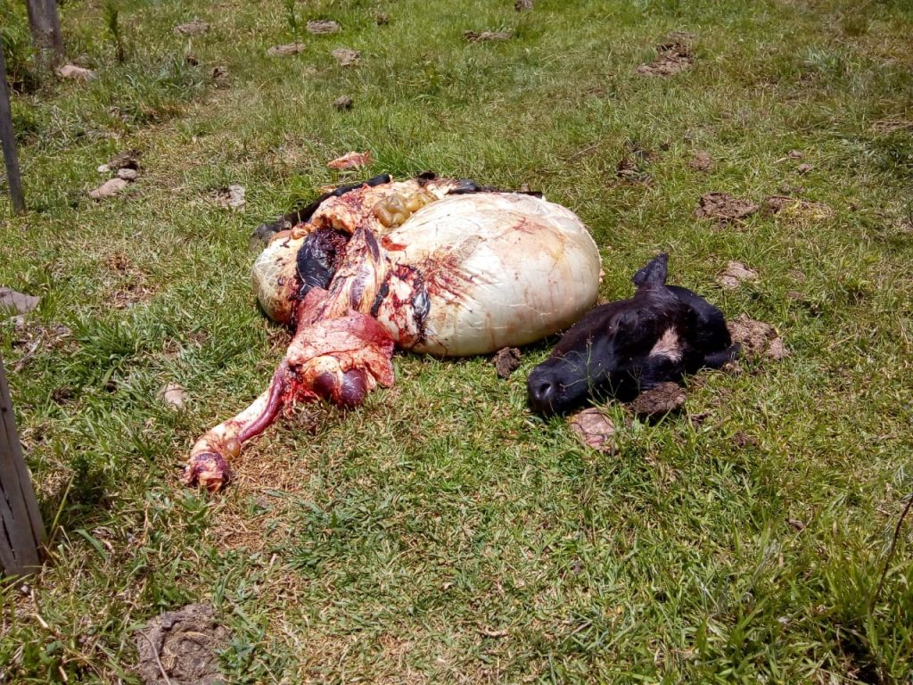 Na manhã de quinta-feira, ao passar próximo ao potreiro, Susin percebeu os restos mortais de dois animais. “Carnearam duas vacas, uma de cerca de dois anos e outra um pouco mais velha, ambas estavam prenhas, mataram a tiros”, comentou o proprietário. De acordo com ele, um dos fetos também foi levado, o outro foi deixado no local.