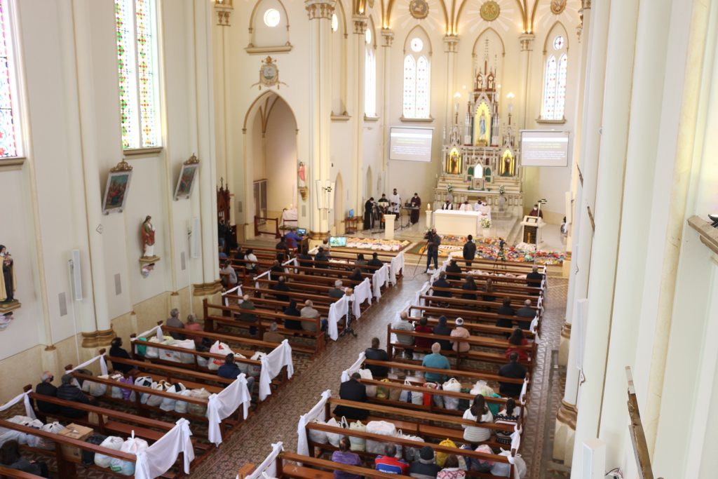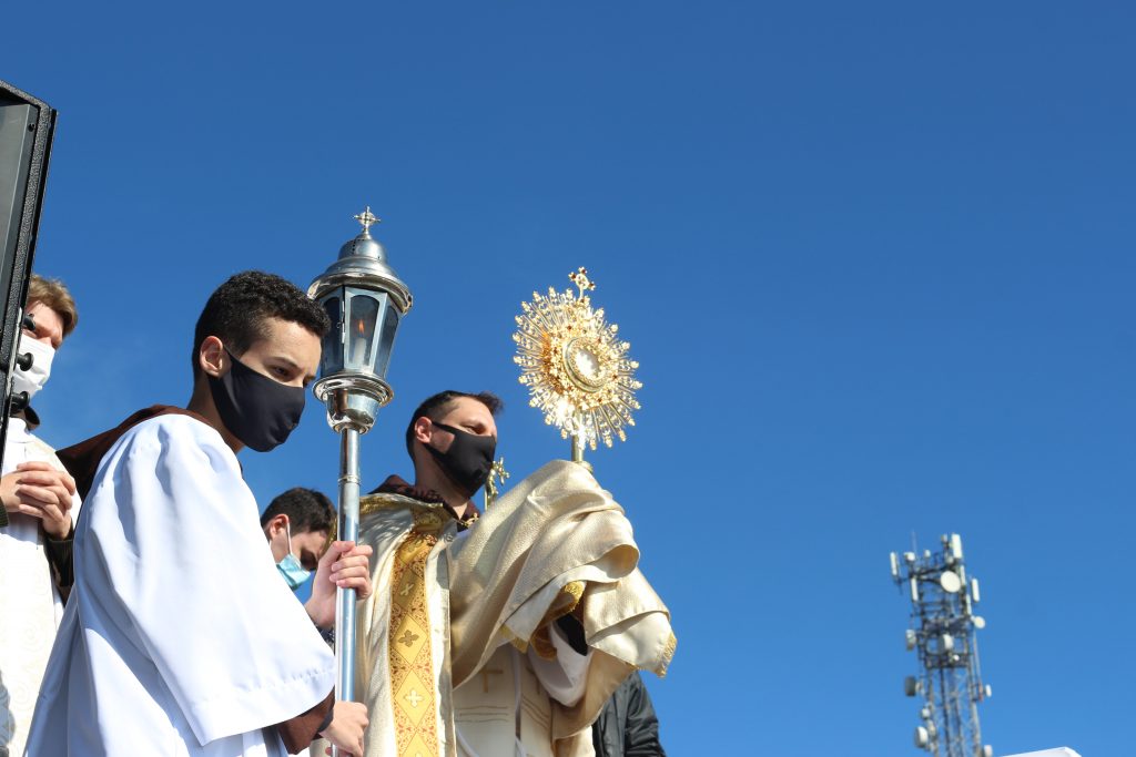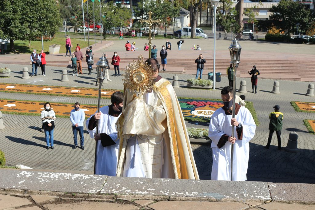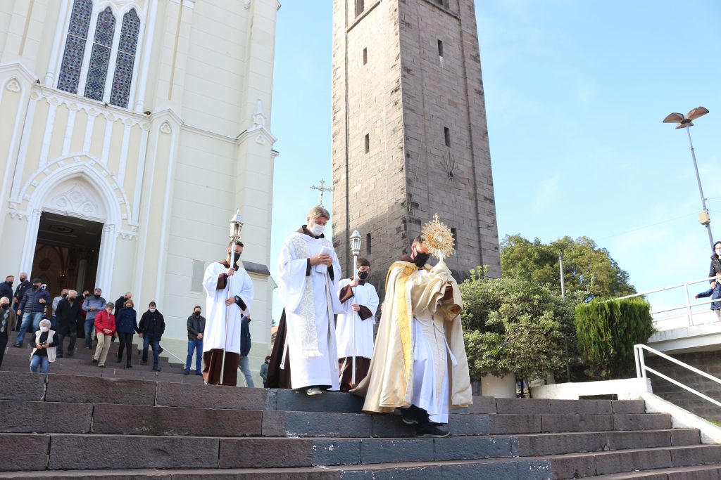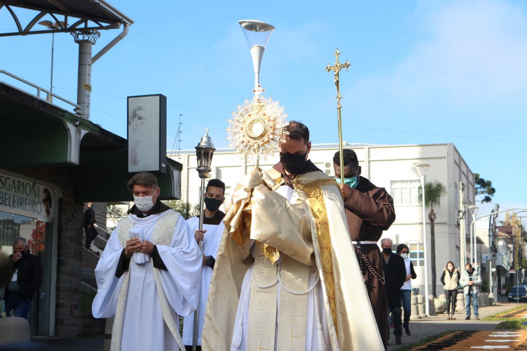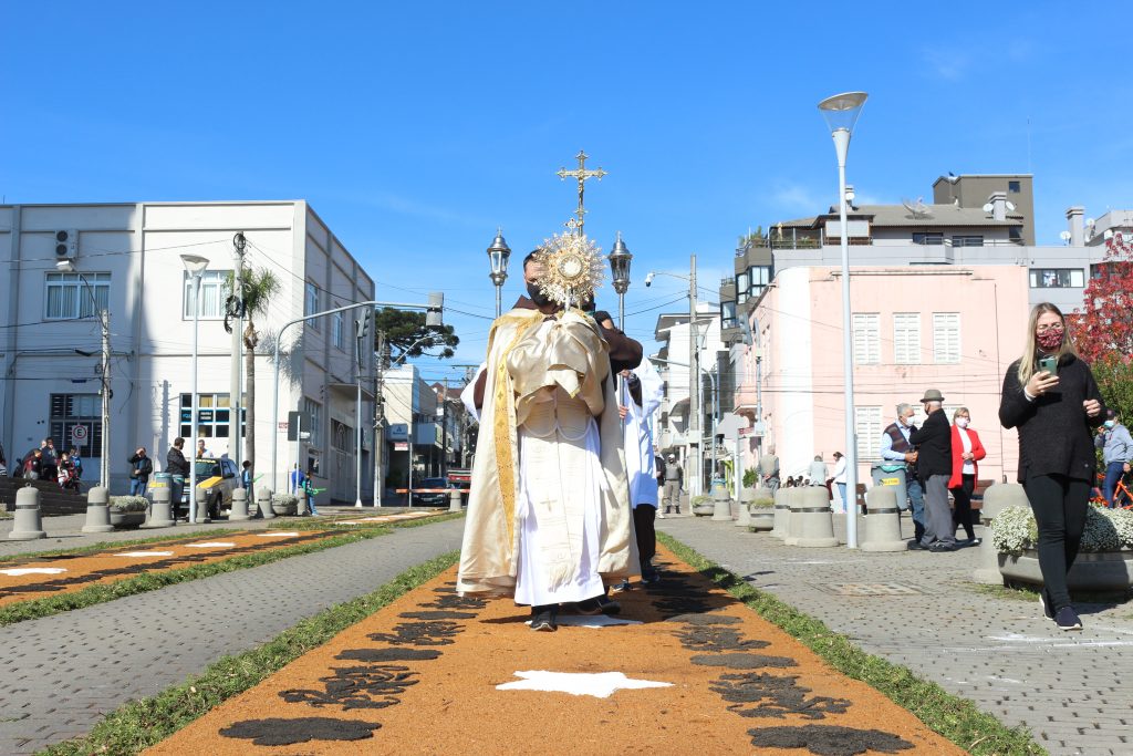 A tradicional missa de Corpus Christi, promovida pela Paróquia Nossa Senhora de Lourdes, foi realizada às 9h desta quinta-feira (3) na Igreja Matriz, em Flores da Cunha. Presidida pelo Frei Vandrigo Zacchi, a celebração foi transmitida ao vivo no Facebook e no rádio pela Solaris 99.1 FM.
