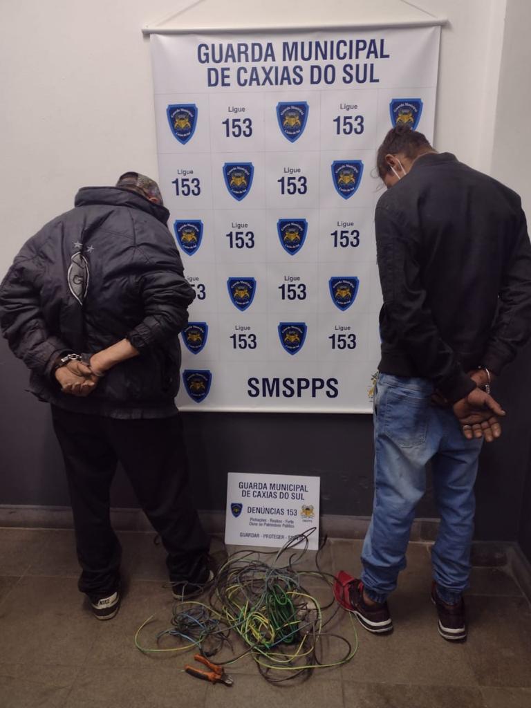 Dois homens foram flagrados furtando fios da iluminação pública da Praça do Trem, na madrugada desta domingo (30) em Caxias do Sul. A Guarda Municipal (GM) estava fazendo patrulhamento de rotina pela região quando recebeu a denúncia de uma pessoa que teria visto a suposta prática de furto.
