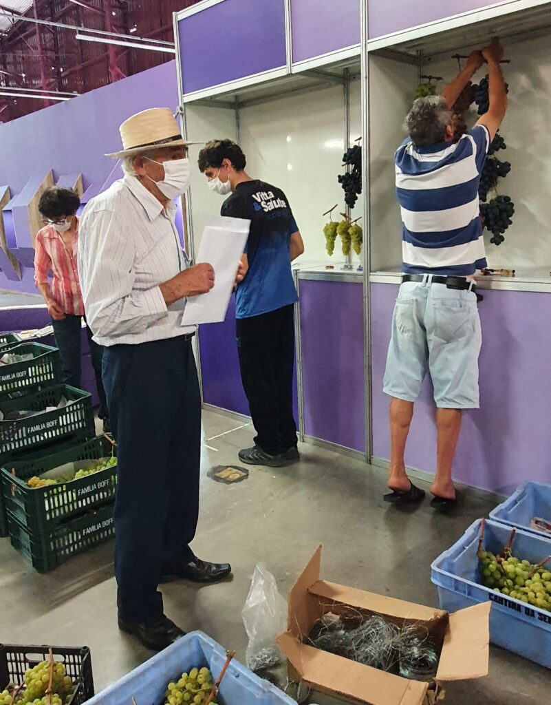 A exposição fica logo na entrada do Centro de Eventos. À direita estão variedades como Bordô, Isabel e Niágara branca e rosada. À esquerda, as variedades de mesa (como Itália e Rubi) e viníferas (como Cabernet Sauvignon, Lorena ou Moscato Branco). Ao fundo, estão os conjuntos formando verdadeiras cascatas de cachos de uva.