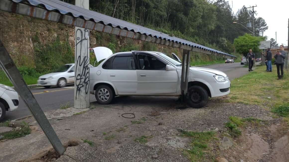 O criminosos fugiram e foram acompanhados pela equipe policial até que a dupla colidisse o veículo que dirigia em uma parada de ônibus. Com eles foram apreendidos dois veículos que eram utilizados para efetuar os furtos: um renault logan de cor cinza e um corsa sedan de cor branca.