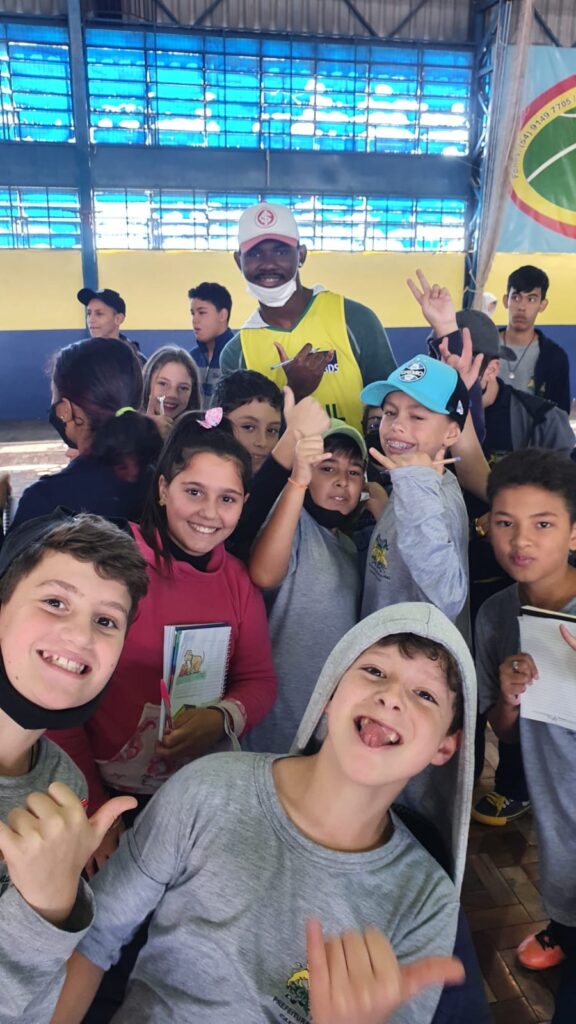 Na Escola Municipal de Ensino Fundamental (EMEF) Ester Justina Troian Benvenutti, os estudantes acabaram tirando proveito de uma feliz coincidência – proporcionada pelo alto nível técnico do quadro de servidores da rede municipal. Professor de educação física da instituição, Flávio Manara é também técnico da seleção brasileira de basquete nas Surdolimpíadas.