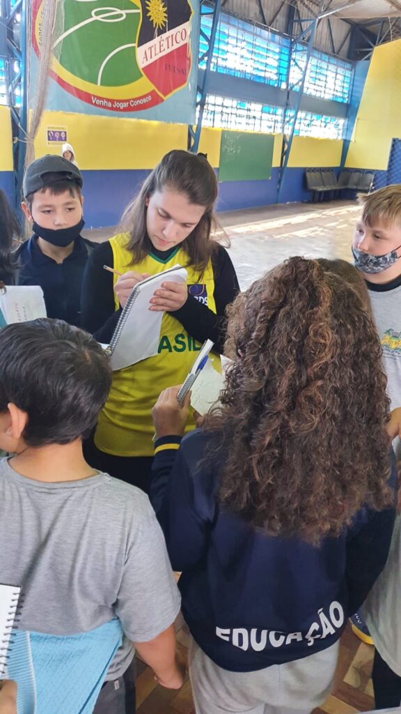 E assim, facilitou a visita dos atletas Levi Brittes e Laura Andreazza, acompanhados da intérprete, professora Patrícia dos Reis de Souza, aquecendo alunos e alunas com a expectativa para a competição ainda durante a fase de preparação.