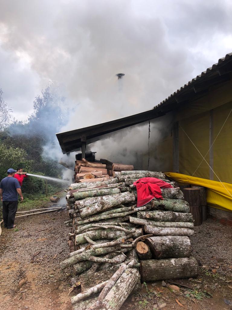 O fogo iniciou na caldeira de um aviário, localizado na Linha 21 de Abril