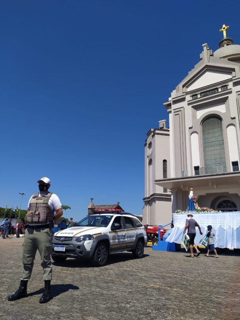 Agricultores da Serra gaúcha participaram da 122ª Romaria Votiva ao Santuário de Caravággio, na manhã desta quarta-feira (02), em Farroupilha. O 36º BPM (Batalhão de Polícia Militar) esteve presente fazendo a segurança dos peregrinos que compareceram ao Santuário para rezar e participar da Missa e da procissão.