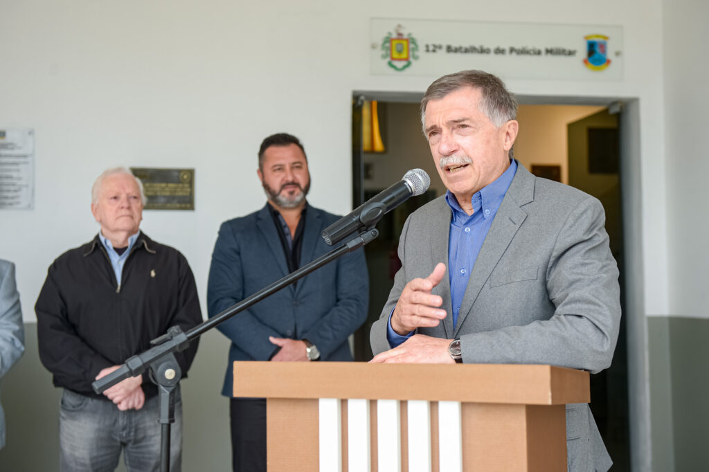 O Comandante do 12ºBPM, Ten. Cel. Emerson Ubirajara de Souza, em seu discurso agradeceu o empenho do executivo para o recebimento das oito viaturas entregues hoje e das quatro camionetes Hilux/Toyota, que o Batalhão ainda irá receber no mês de maio. “ Sabemos a importância da entrega destas viaturas e que o prefeito Adiló Didomenico teve grande relevância pois estava na sua frente quando fez a solicitação destes veículos ao governo do estado para nosso município”, disse o comandante.