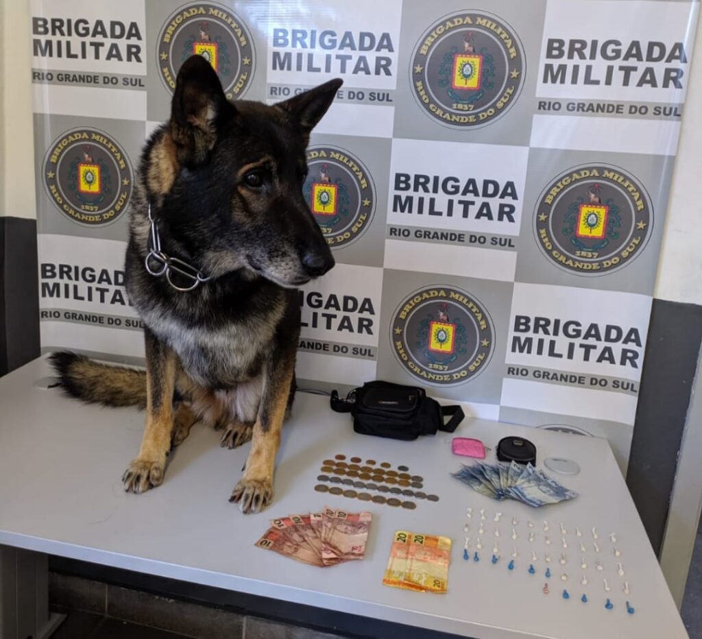 Uma prisão por tráfico de drogas foi realizada com auxílio de um cão farejador pela Brigada Militar (BM) de Caxias do Sul na tarde desta segunda-feira (7). A equipe do canil do 12º Batalhão (12ºBPM) acompanhada do cão Pantro realizava patrulhamento de rotina na rua Henrique Cia, no bairro Marechal Floriano, quando registrou o flagrante de um homem que estava vendendo drogas.