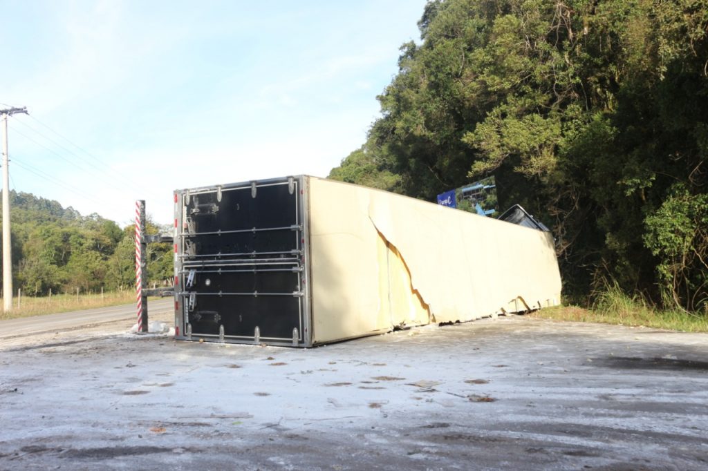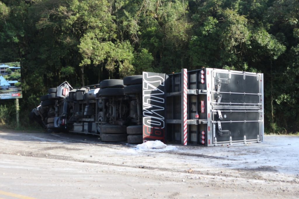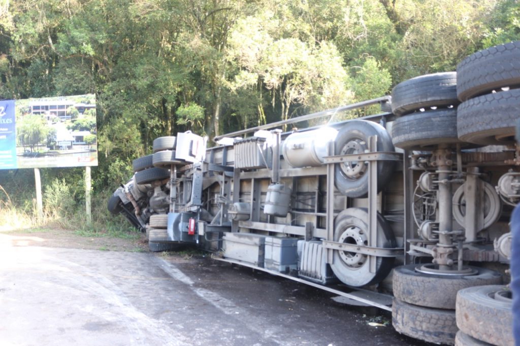 Uma carreta com placas de Campinas (SP), tombou na VRS-814, em Flores da Cunha na noite da quarta-feira (30). O acidente foi registrado no entroncamento da Estrada Ângelo Araldi com a Rua Girólamo Mioranza, na localidade de Alfredo Chaves.