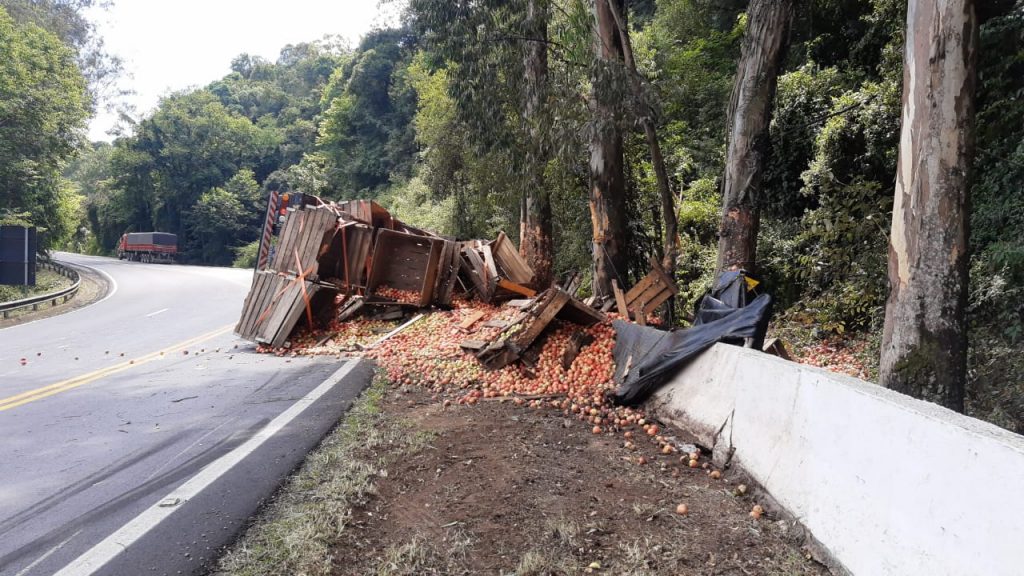 O veículo seguia no sentido Caxias do Sul-Flores, quando, por motivos desconhecidos, a carga teria pendido para o lado direito, fazendo com que o condutor perdesse o controle do caminhão e acabou tombando no acostamento. De acordo com testemunhas, o motorista da carreta emplacada em Fartura (SP), não ficou ferido.