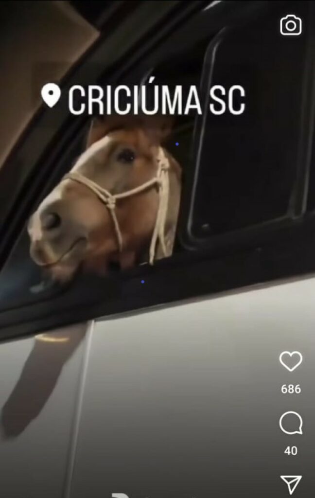 Um cavalo foi flagrado viajando dentro de um ônibus no centro de Cricíuma (SC) no último domingo (11). As imagens de um cavalo com a cabeça para fora da janela do coletivo foram gravadas em um celular.