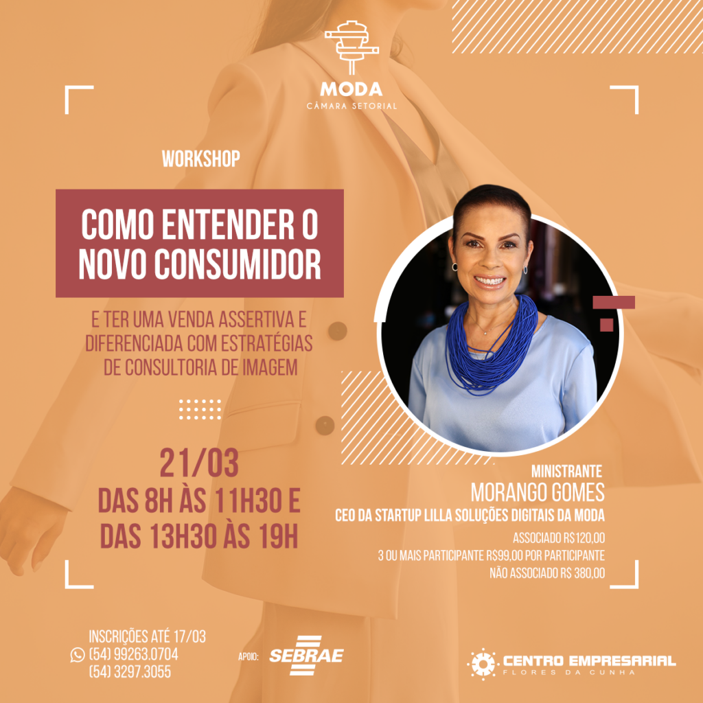 O Centro Empresarial (CE) de Flores da Cunha promove na próxima segunda-feira (21) um workshop com a Fundadora e CEO da startup Soluções Digitais da Moda, Morango Gomes. O evento, ocorre das 8h às 11h30min e das 13h30min às 19h. O Sebrae é parceiro da realização desse evento.