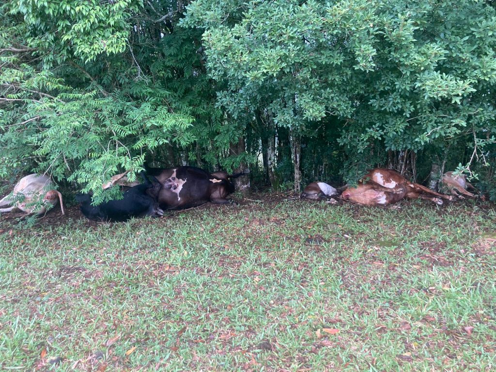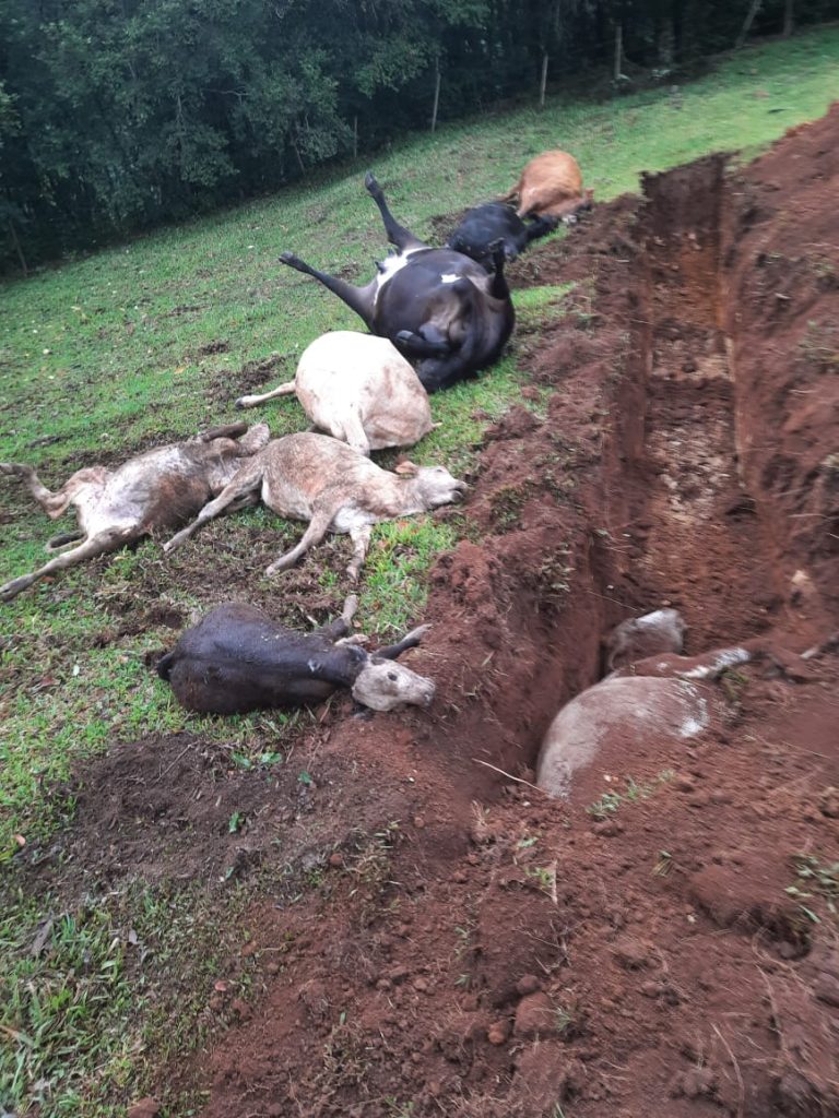 Os animais estavam se escondendo da chuva no momento que um raio atingiu o local ocasionando a morte dos mesmos. O prejuízo calculado foi de aproximadamente 30 mil reais.