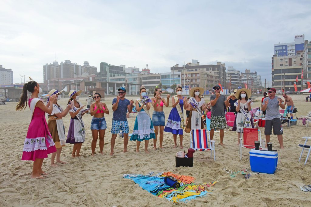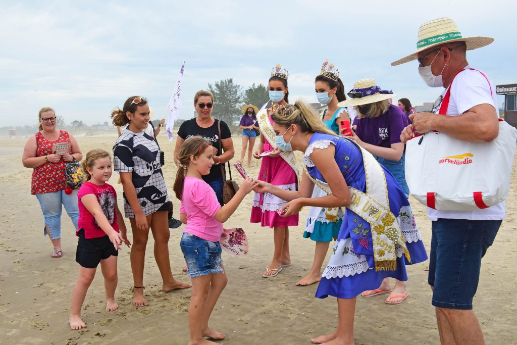 A rainha Pricila Zanol, as princesas Bianca Fabro Ott e Bruna Mallmann, embaixatrizes e integrantes da Comissão Comunitária e Social da Festa foram muito bem recebidos pelos veranistas. Famílias inteiras na beira da praia entraram no clima e cantaram a música tema desta edição da Festa. “Todos aceitaram muito bem nosso material e quando convidávamos a cantar a música, na hora participavam. Foi muito positiva a ação, envolvemos muitas pessoas de todas as idades e cidades nestes dois dias pelas praias”, avalia a diretora Andréia Copini, da Diretoria da Juventude, promotora do arrastão.