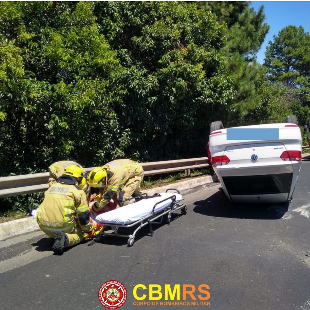 Um capotamento de veículo foi registrado na tarde desta quarta-feira (16) na ERS-122, entre Farroupilha e Caxias do Sul. O acidente ocorreu no km 62 da rodovia e envolveu um Volkswagen Voyage e um caminhão. Segundo testemunhas, o veículo de passeio teria sido atingido na traseira, fazendo com que o mesmo saísse da pista e capotasse.