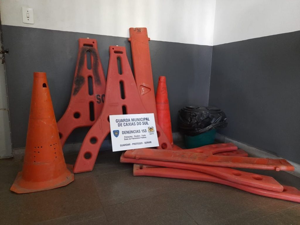 Durante patrulhamento realizado na tarde desta terça-feira (14) no bairro Mariani, em Caxias do Sul, a Guarda Municipal (GM) visualizou objetos suspeitos em uma reciclagem. Dois cones e dois cavaletes foram encontrados no interior da propriedade. Um homem, de 42 anos, admitiu ter sido o responsável pelo furto.