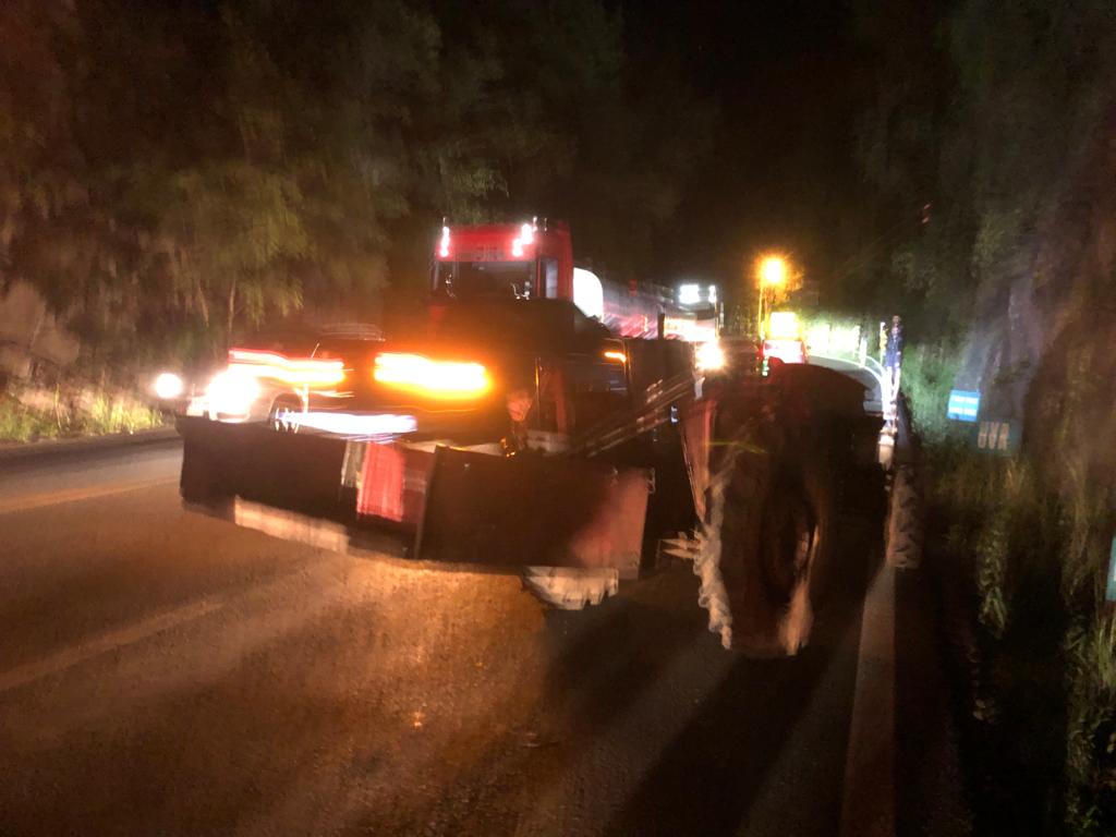 Mais tarde, às 19h30min, cerca de dois quilômetros adiante, na mesma rodovia e capela, km 114, próximo ao Bell Vedere, uma colisão entre um Fiat Uno e um trator resultou no ferimento de um idoso.