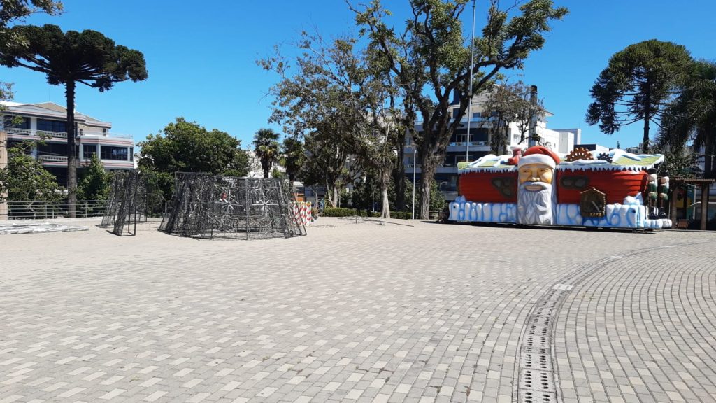As decorações de Natal que enfeitavam as ruas de Flores da Cunha desde o final de novembro de 2021 começaram a ser removidas na manhã desta quarta-feira (12). Na Praça da Bandeira, onde havia a arvore de natal e a casinha do Papai Noel, a retirada começou já nas primeiras horas da manhã.