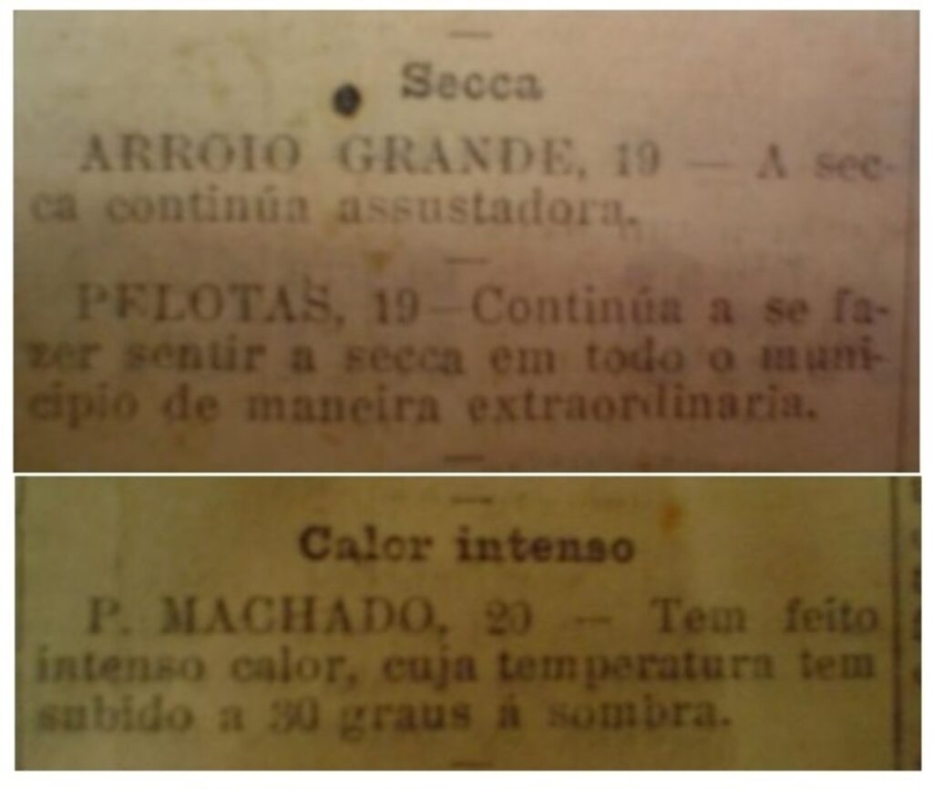 Publicações em jornais à época sobre acontecimentos meteorológicos davam pouca atenção e não costumavam passar de notas com poucas palavras, uma vez que reportagens não eram as regras nos jornais. Nota publicada no jornal A Federação em 1917, contudo, narrou o calor extraordinário em Alegrete e os recordes de temperatura registrados com tabelas e uma descrição do calor.