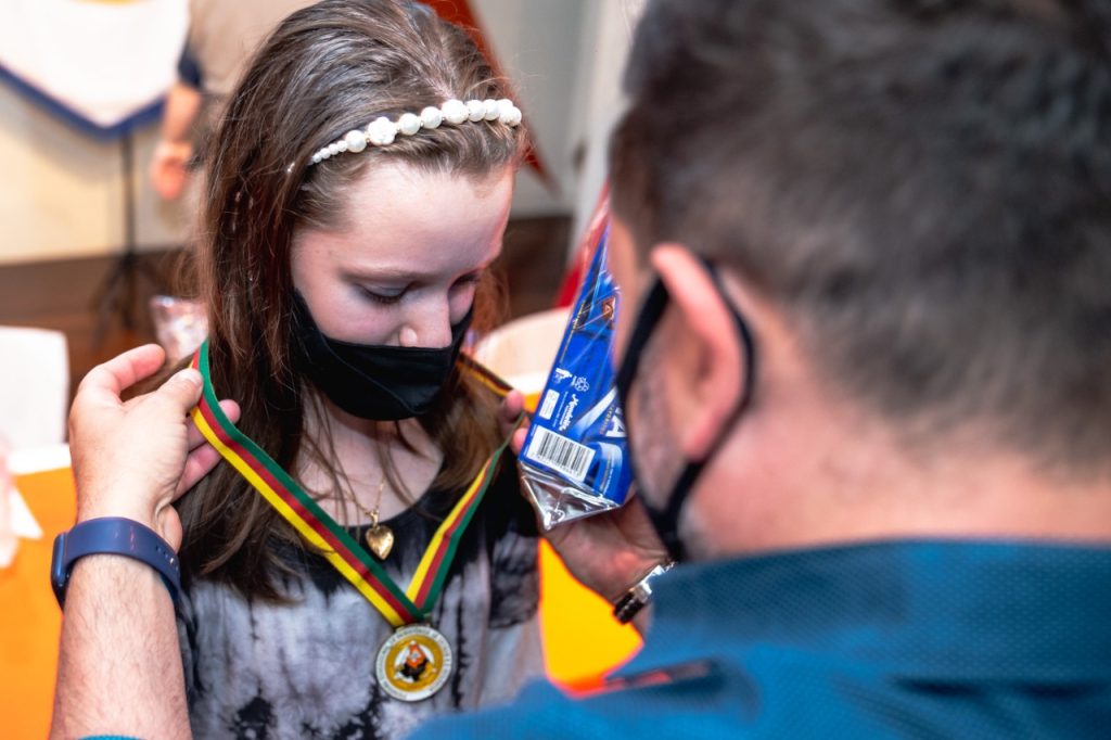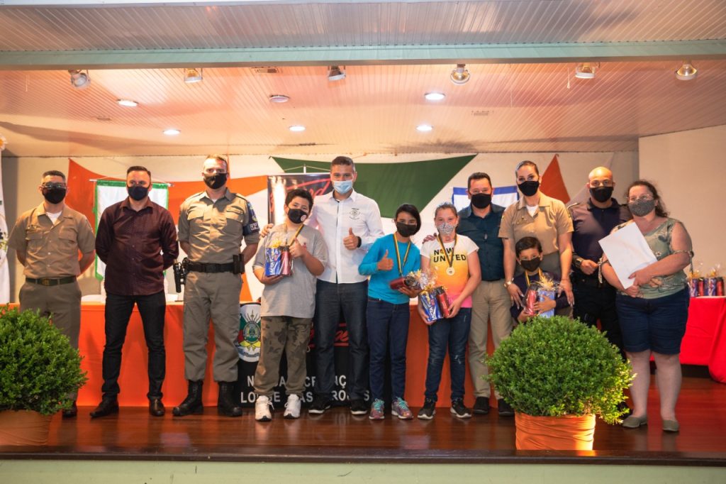 Durante a formatura, cada uma das vinte turmas teve um aluno destaque, os quais receberam o certificado e medalha do programa, a pequena Laís da Silva Brito, aluna da Escola Municipal Guerino Zugno, se encheu de lágrimas ao receber sua medalha.