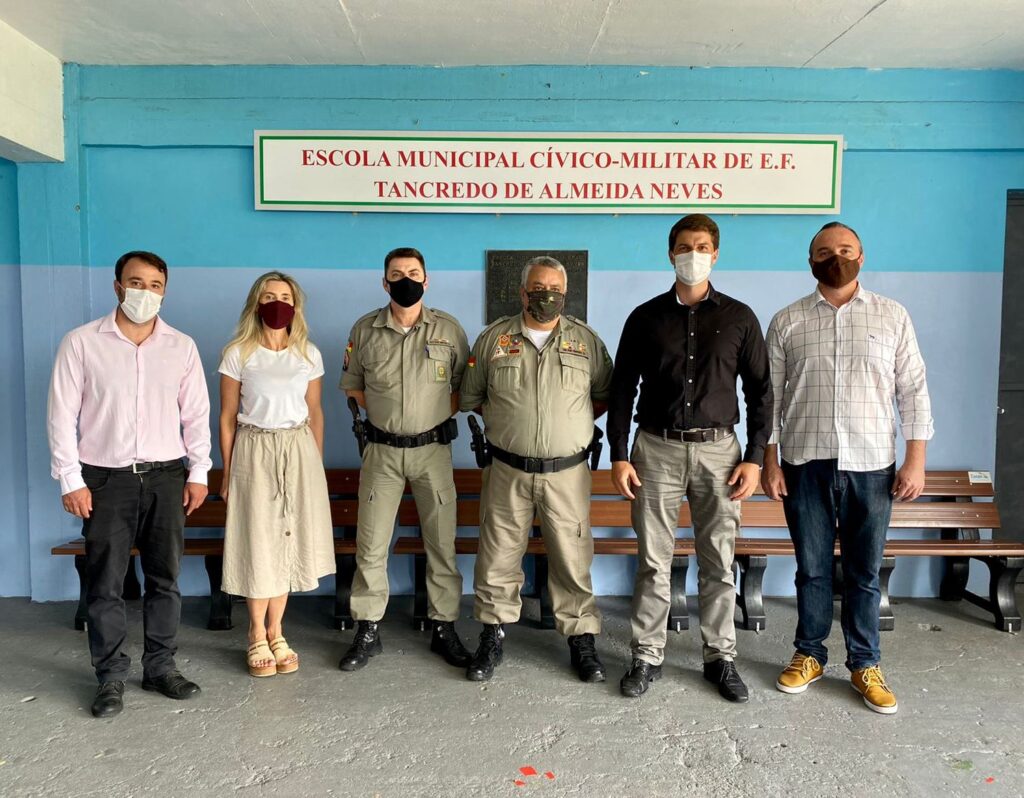 Com a volta às aulas 100% presencial neste ano, também iniciaram as atividades do projeto da Escola Municipal Cívico-Militar Tancredo de Almeida Neves, no bairro União, em Flores da Cunha. Para o começo do ano letivo no novo modelo, dois monitores cívico-militares se farão presentes. A atuação do tenente Ferreira e do sargento Herton, da Brigada Militar, já começou no dia 21 de fevereiro. De acordo com a Prefeitura, o objetivo de manter os monitores é implementar um processo educativo por meio do resgate da cidadania, motivando os alunos em uma rotina de organização e responsabilidade.