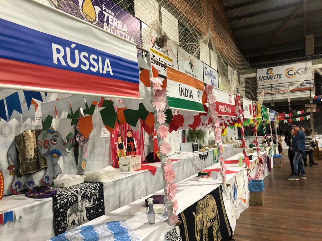 Participaram do evento pais, alunos, professores e comunidade em geral e após as apresentações puderam conhecer e saborear a culinária de diversos países expostos em estandes espalhados pelo espaço.