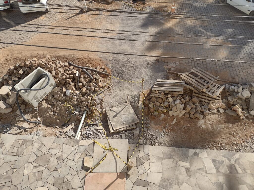 “Ao analisarmos o conjunto, obra/ esboço percebeu-se que os projetos de aterramento da fiação estavam incompletos. Foi feito somente projeto de aterramento da fiação de energia elétrica, mas não da fiação de internet e telefonia. Também não estavam previstas as entradas de energia para as edificações da rua, apenas para o prédio da Prefeitura Municipal”, afirma a secretária.