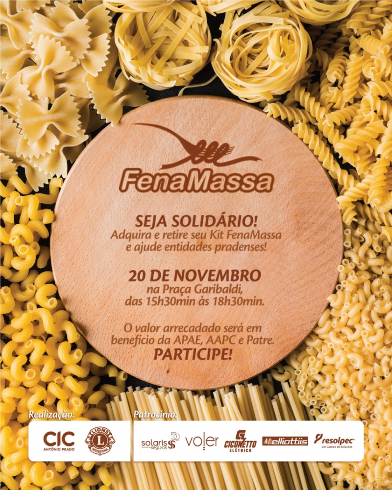 Neste ano devido as restrições da pandemia a 7ª edição do Festival Nacional da Massa (Fenamassa) não será realizado, porém haverá uma edição especial com a comercialização de kits com produtos típicos do Festival.