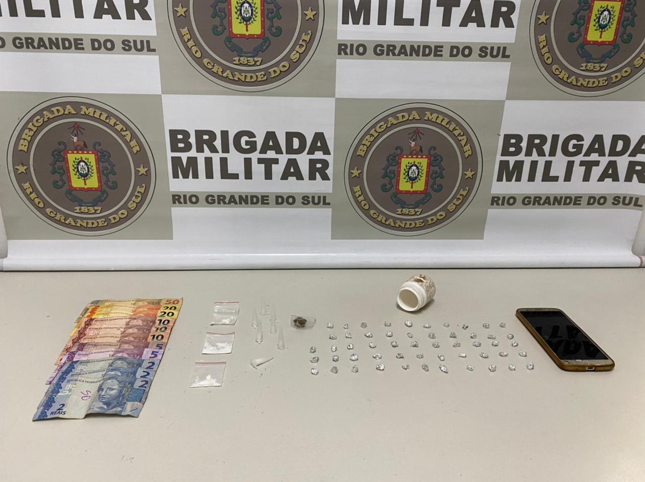 A Brigada Militar também encontrou com o indivíduo, que foi abordado no bairro União, maconha e cocaína