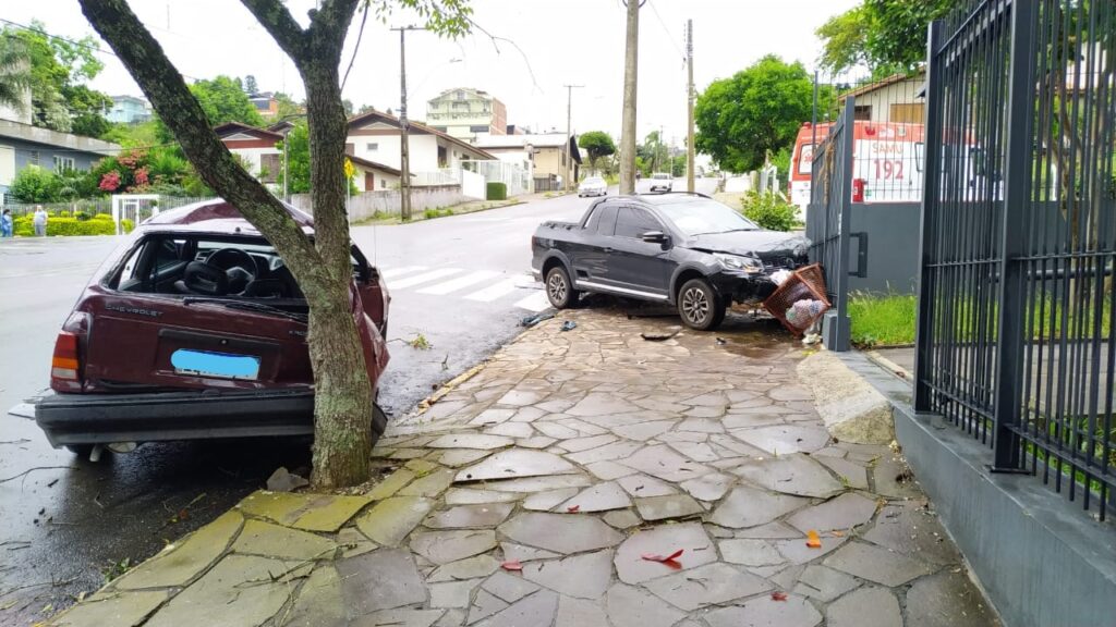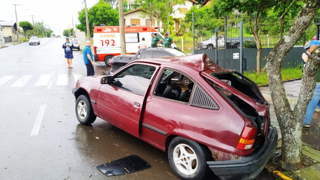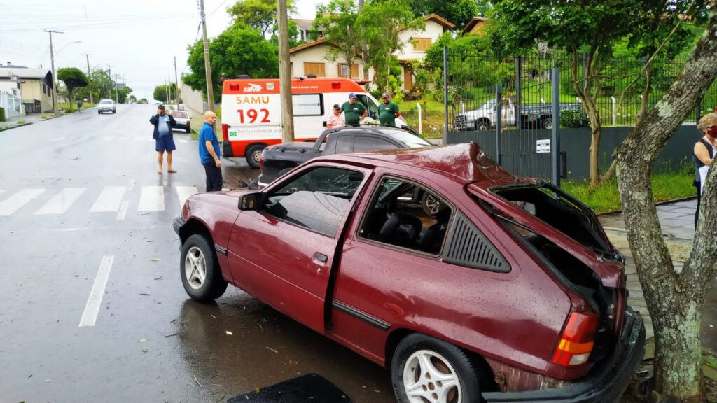 Segundo populares que estavam no local na hora do acidente, o condutor do Kadett seguia pela rua da Paz, quando o condutor da Saveiro, que seguia pela rua Professora Maria Dal Conte, acabou colidindo contra o veículo.