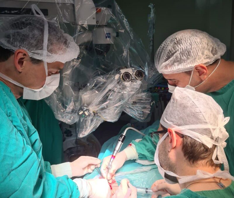 Além dele, participaram da cirurgia os colegas de especialidade Dra. Mariana Letti, de Farroupilha, e Dr. Fabiano Aita, também de Caxias, o cirurgião otorrinolaringologista Dr. Felipe Félix, do Rio de Janeiro, e o neurologista Clauber Jänisch, de Porto Alegre. A equipe multidisciplinar ainda foi composta pelas fonoaudiólogas Tatiana Garbin Bueno, de Caxias do Sul, e Nayara Fernandes, de São Paulo, que realizaram os testes intraoperatórios, e da caxiense Karem Balen, que faz acompanhamento fonoaudiológico do paciente desde a infância.
