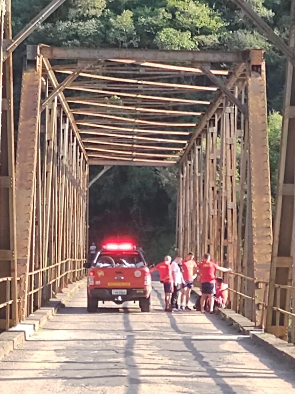 Era por volta das 15h quando a Brigada Militar foi acionada para atender a ocorrência na ponte de ferro na ERS 448, divisa com o município de Farroupilha.