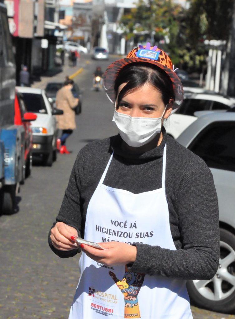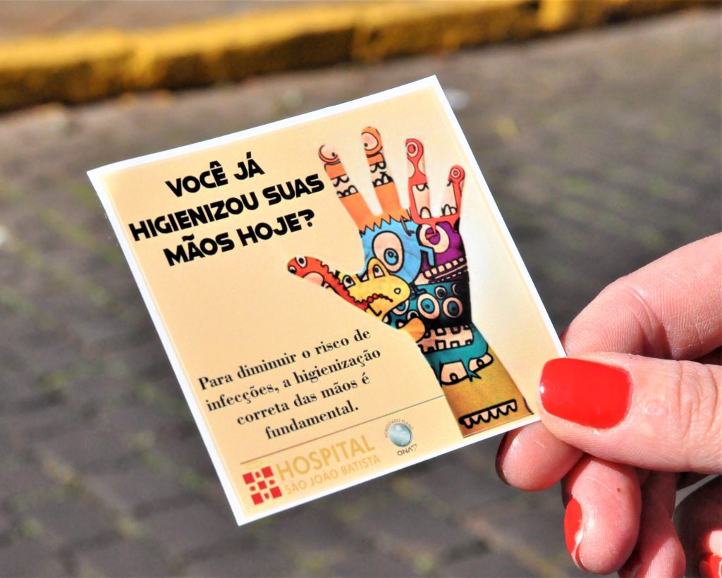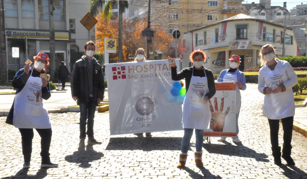 Para conscientizar as pessoas sobre a importância da higienização correta das mãos, profissionais do Hospital São João Batista (HSJB), de Nova Prata, realizaram ação na quarta-feira (26), na Praça da Bandeira.