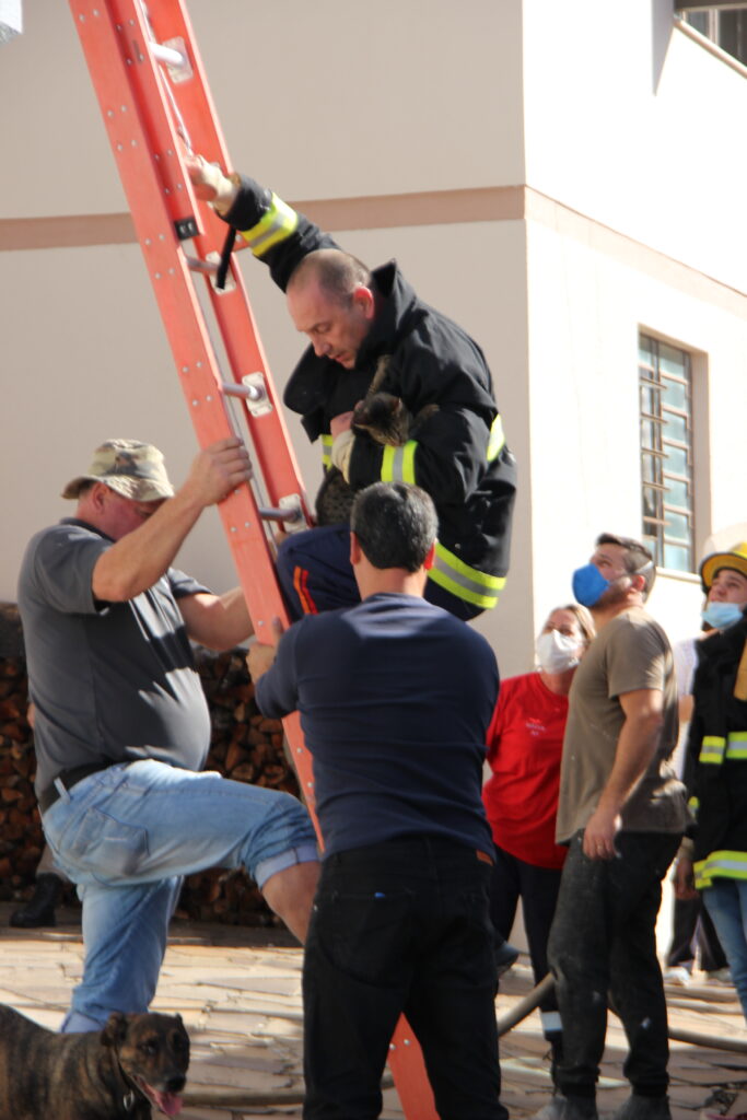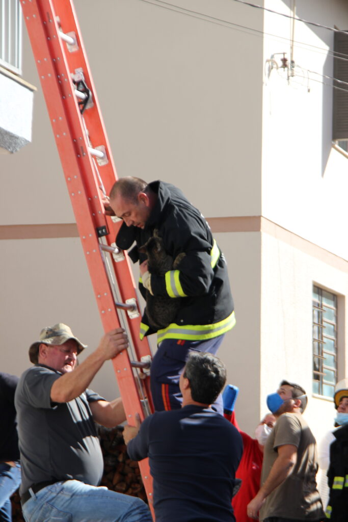 Durante a operação de combate as chamas ouve o resgate de um gato de estimação da família, que se encontrava no terceiro andar da casa.