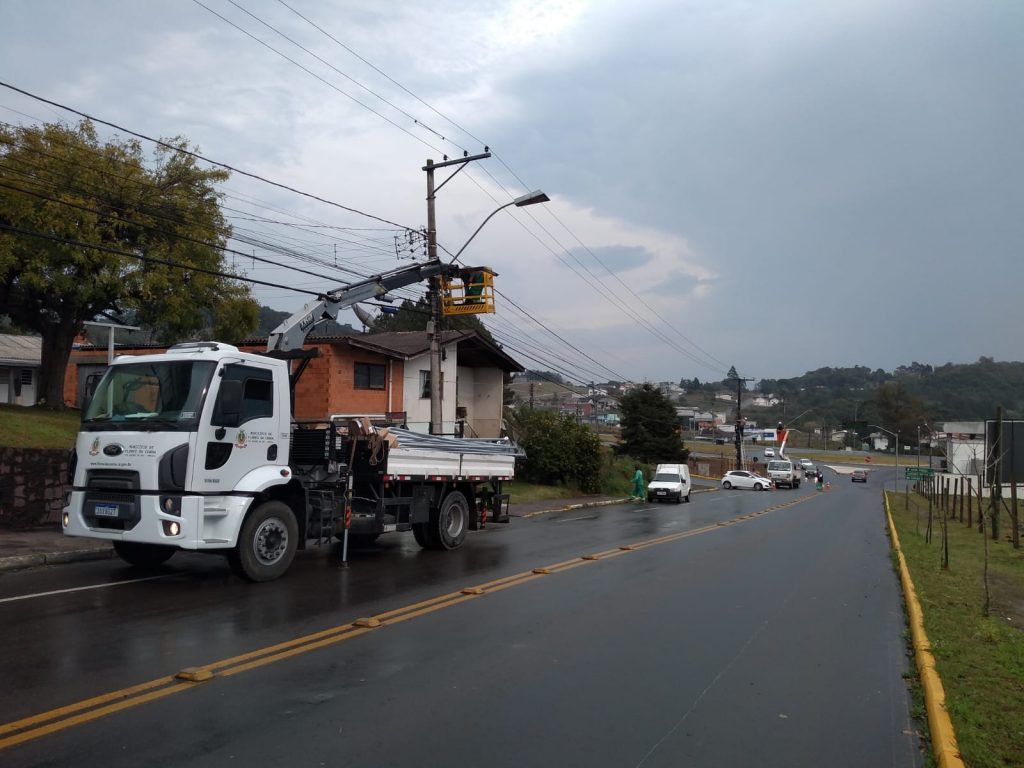 A Secretaria de Obras e Viação de Flores da Cunha segue com a substituição da iluminação pública por luminárias de LED nesta quarta-feira (18). A equipe realiza o serviço na Rua Dr. Montaury, até o trevo da saída para Nova Pádua; e na Rua Heitor Curra, a partir da esquina com a Frei Eugênio em direção ao Cemitério Público Municipal.