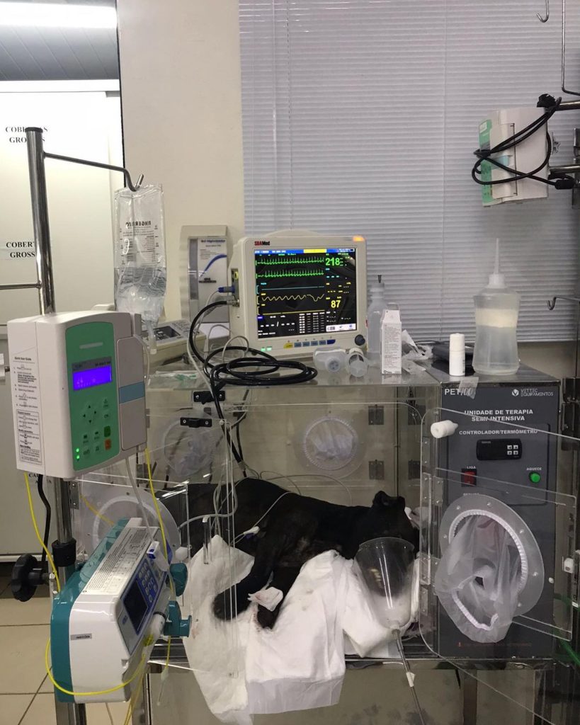Com machucados em todo corpo, incluindo olhos, nariz e língua, testemunhas acreditam que alguém tenha ateado fogo no animal