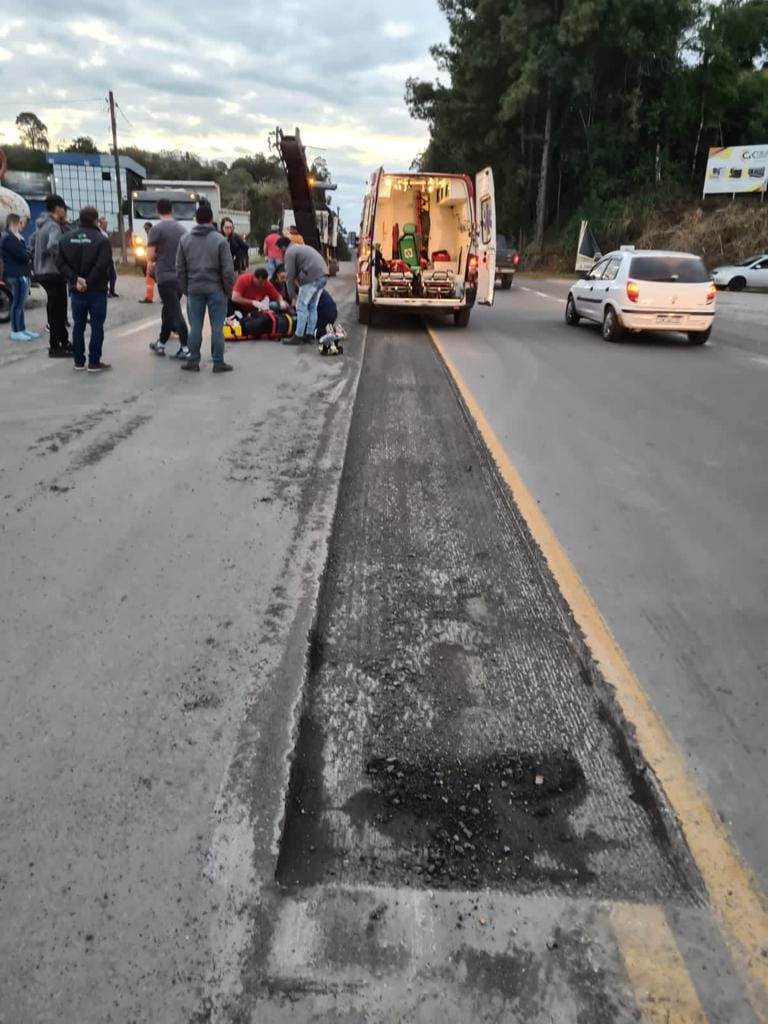 Profissionais estavam fazendo a manutenção do asfalto no momento. O acidente ocorreu às 17h30min. Os socorristas encaminharam o homem, com escoriações, ao hospital São José para avaliação.