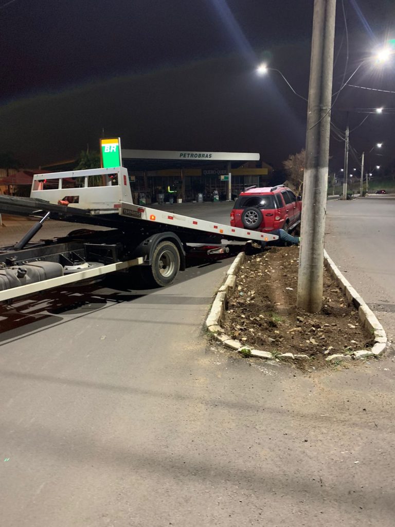 A guarnição identificou em frente ao quartel da Brigada, às 05h50min, um veículo Ecoesport, de cor vermelha, que havia se chocado contra uma árvore no canteiro central.