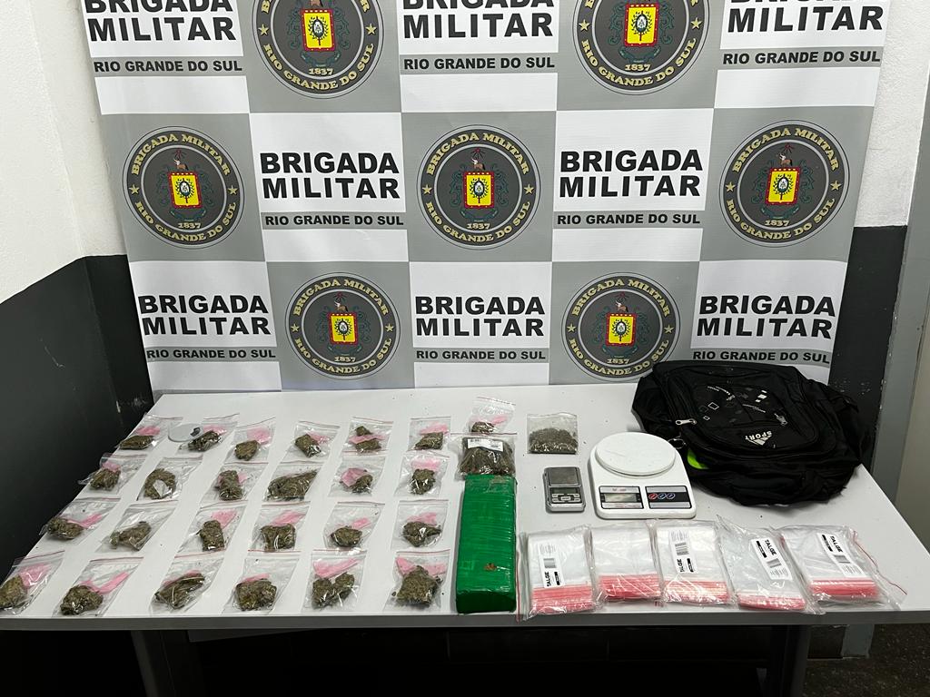 Com ela os policias aprenderam mais de um quilo de maconha, duas balanças de precisão e materiais para embalagem das drogas