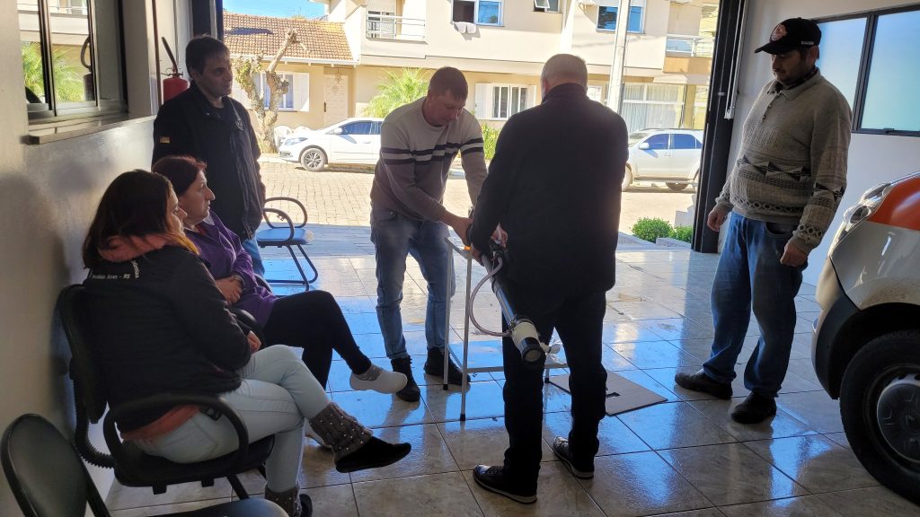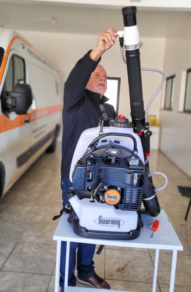 Na última terça-feira(14), o município de Protásio Alves recebeu a entrega técnica de um nebulizador costal motorizado. Na sede da Secretaria da Saúde, o técnico Luiz Fernando da Silva explicou o funcionamento do equipamento e deixou as recomendações práticas para o uso na aplicação de fumacê para combater o aedes aegypti , mosquito transmissor da dengue e de outras doenças.