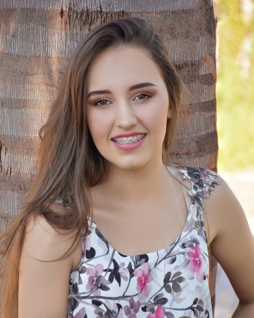 Eduarda Marinho dos Santos, 18 anos, estudante, 1,62 de altura, 50 quilos, manequim 36.