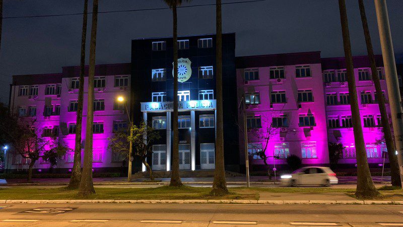 O Palácio da Polícia, na Capital, foi iluminado no início da noite de sexta-feira (1º/10) com luzes cor-de-rosa para simbolizar o engajamento na luta contra o câncer de mama. O prédio ficará iluminado com a cor especial até o dia 31 de outubro. A ação faz parte do Outubro Rosa, campanha de conscientização e prevenção da doença e que ocorre em todo o país.