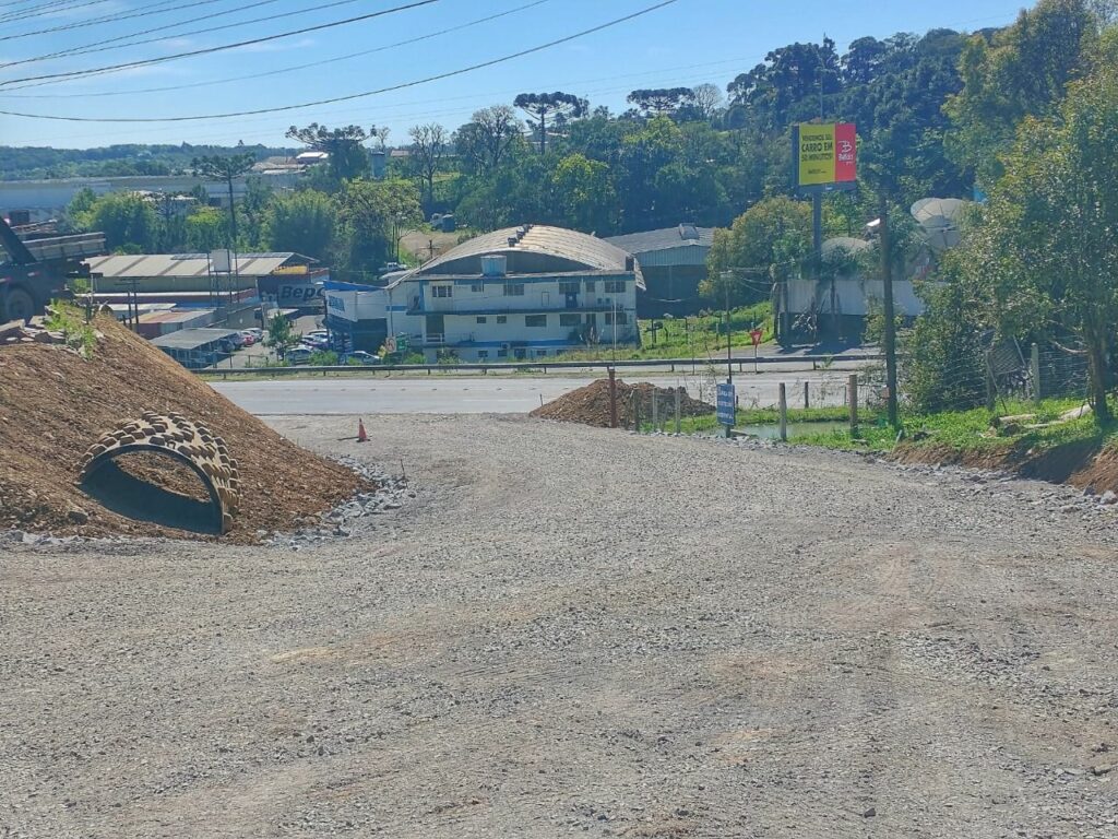 Nesta quarta-feira (31), avançaram os serviços de terraplenagem para a colocação da base do piso. Com isso, aumentou a circulação de máquinas pesadas e caminhões no quilômetro 82 da ERS-122.