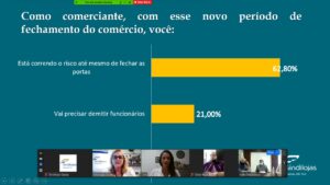 O Sindilojas Caxias promoveu uma pesquisa online, na segunda e terça-feira (1° e 2 de março) com os comerciantes do segmento varejista não essencial para obter dados que demonstrem o panorama do comércio durante a pandemia. Para 62,8% dos empresários entrevistados, existe o risco de que o seu estabelecimento tenha que fechar as portas se o período de restrições do comércio voltar a se prolongar.