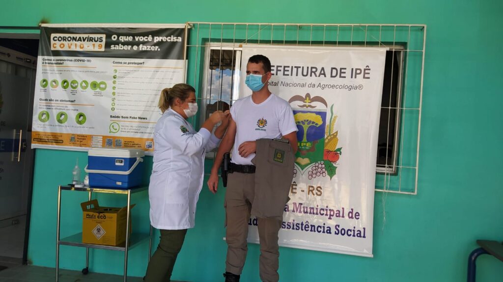 A segunda dose da vacina será aplicada nos policias de Ipê em 30 de junho.