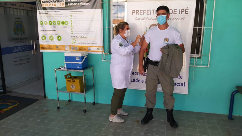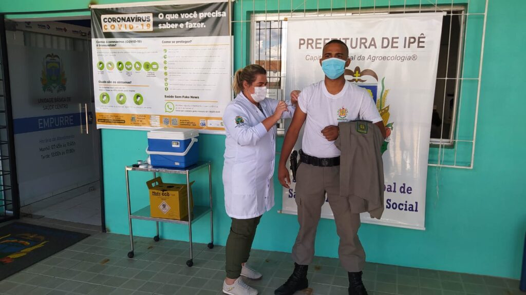 Todo o efetivo militar ipeense na ativa foi vacinado nessa tarde na UBS centro. Segundo o comandante da corporação, Sargento Mazardo, falta apenas duas policiais, uma está em férias e outra está grávida.